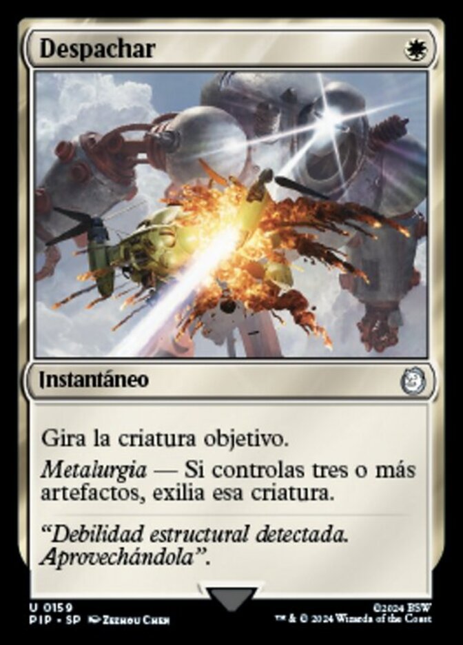 | Rules | Tap target creature. Metalcraft — If you control three or more artifacts, exile that creature. |