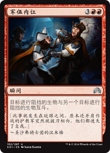 | Rules | Target blocking creature fights another target blocking creature. |