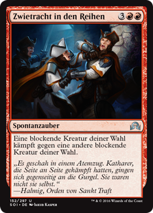 | Rules | Target blocking creature fights another target blocking creature. |