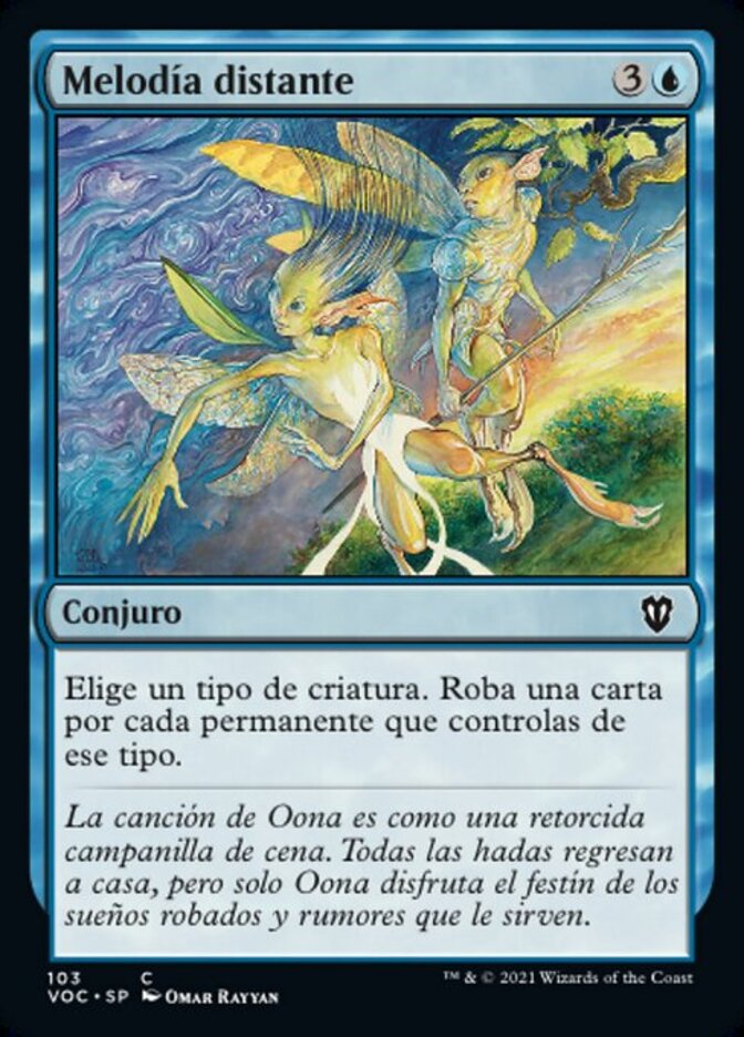 | Flavor | Oona's song is like a twisted dinner chime. All the faeries return home, but it is Oona who feasts-on the stolen dreams and rumors they serve her. |
