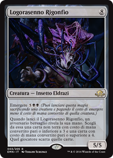 | Rules | Emerge (You may cast this spell by sacrificing a creature and paying the emerge cost reduced by that creature's mana value.) When you cast this spell, target opponent reveals their hand. You choose from it a nonland card with mana value 3 or less and a card with mana value 4 or greater. That player discards those cards. |