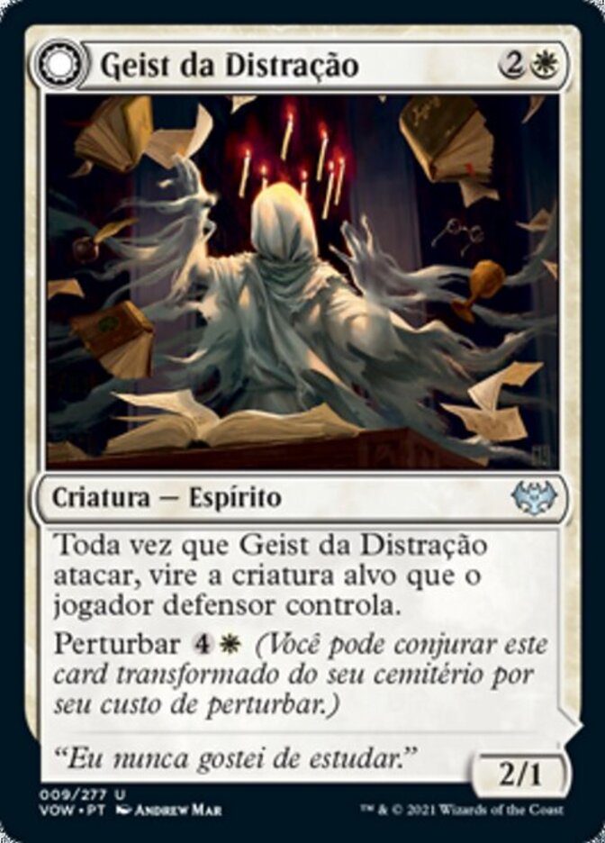 | Rules | Whenever Distracting Geist attacks, tap target creature defending player controls. Disturb (You may cast this card from your graveyard transformed for its disturb cost.) // Enchant creature Enchanted creature has "Whenever this creature attacks, tap target creature defending player controls." If Clever Distraction would be put into a graveyard from anywhere, exile it instead. |