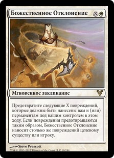 | Rules | Prevent the next X damage that would be dealt to you and/or permanents you control this turn. If damage is prevented this way, Divine Deflection deals that much damage to any target. |