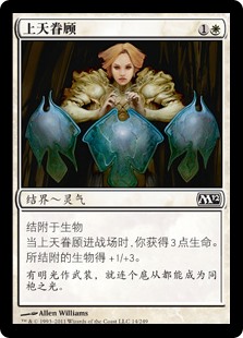 | Rules | Enchant creature When Divine Favor enters the battlefield, you gain 3 life. Enchanted creature gets +1/+3. |