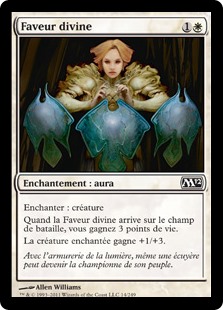 | Rules | Enchant creature When Divine Favor enters the battlefield, you gain 3 life. Enchanted creature gets +1/+3. |