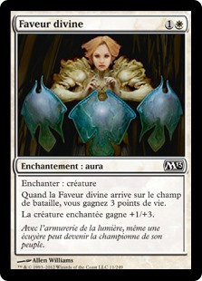 | Rules | Enchant creature When Divine Favor enters the battlefield, you gain 3 life. Enchanted creature gets +1/+3. |