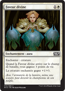 | Rules | Enchant creature When Divine Favor enters the battlefield, you gain 3 life. Enchanted creature gets +1/+3. |