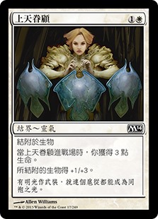 | Rules | Enchant creature When Divine Favor enters the battlefield, you gain 3 life. Enchanted creature gets +1/+3. |