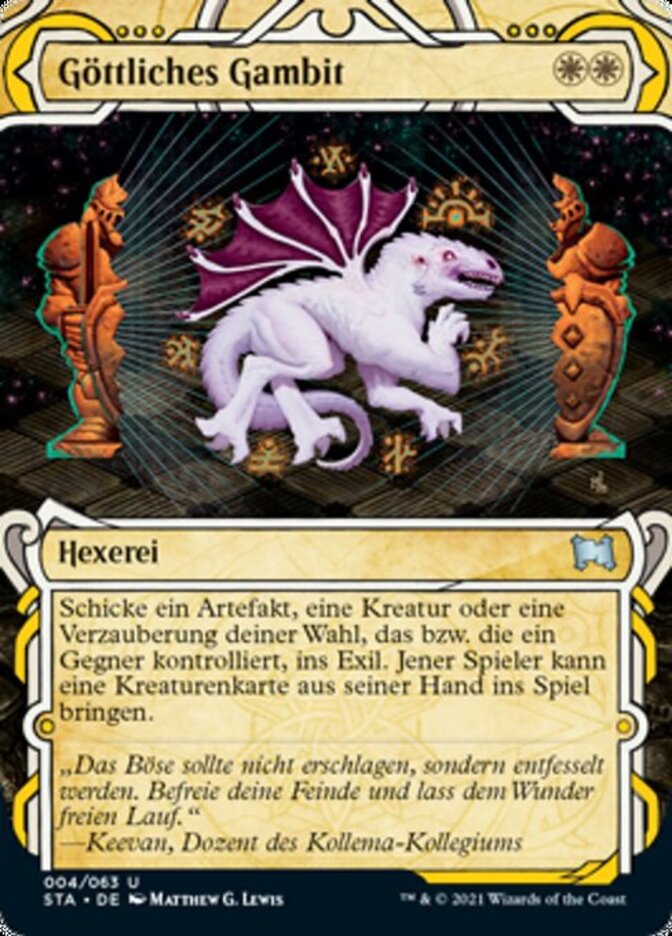 | Rules | Exile target artifact, creature, or enchantment an opponent controls. That player may put a permanent card from their hand onto the battlefield. |