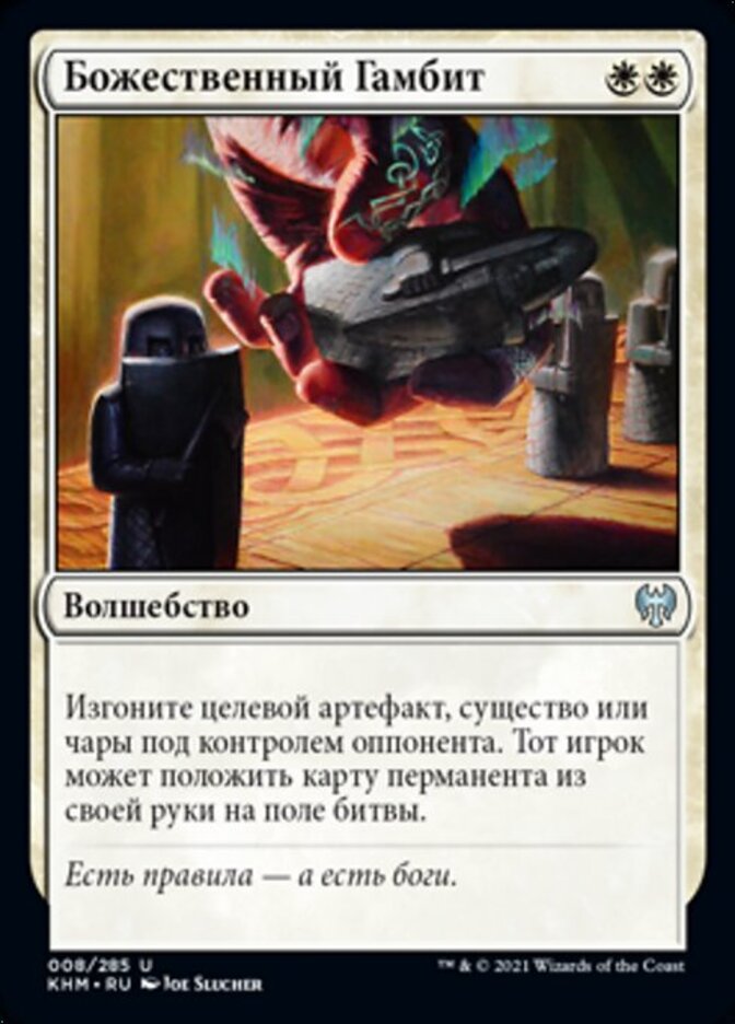 | Rules | Exile target artifact, creature, or enchantment an opponent controls. That player may put a permanent card from their hand onto the battlefield. |