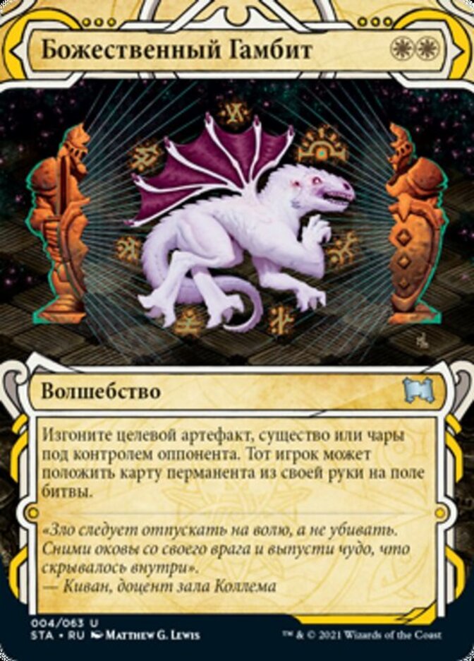 | Rules | Exile target artifact, creature, or enchantment an opponent controls. That player may put a permanent card from their hand onto the battlefield. |