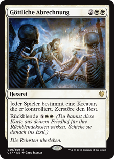 | Rules | Each player chooses a creature they control. Destroy the rest. Flashback (You may cast this card from your graveyard for its flashback cost. Then exile it.) |