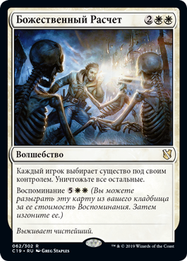 | Rules | Each player chooses a creature they control. Destroy the rest. Flashback (You may cast this card from your graveyard for its flashback cost. Then exile it.) |