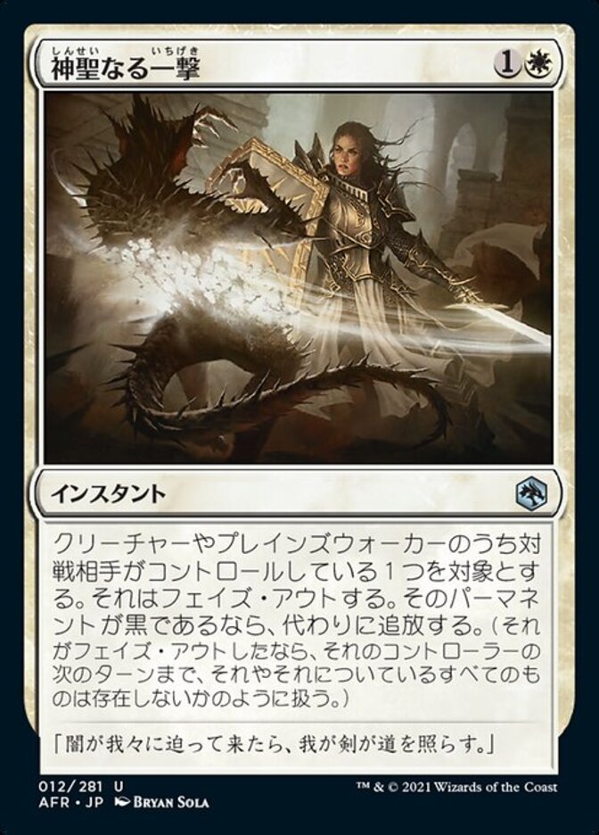 | Rules | Target creature or planeswalker an opponent controls phases out. If that permanent is black, exile it instead. (If it phases out, treat it and anything attached to it as though they don't exist until its controller's next turn.) |