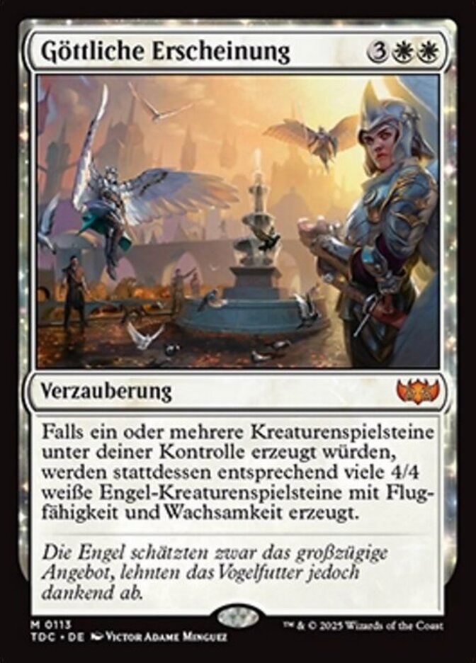 | Rules | If one or more creature tokens would be created under your control, that many 4/4 white Angel creature tokens with flying and vigilance are created instead. |