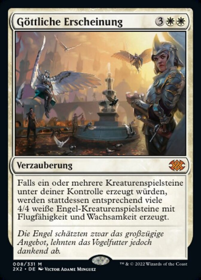 | Rules | If one or more creature tokens would be created under your control, that many 4/4 white Angel creature tokens with flying and vigilance are created instead. |