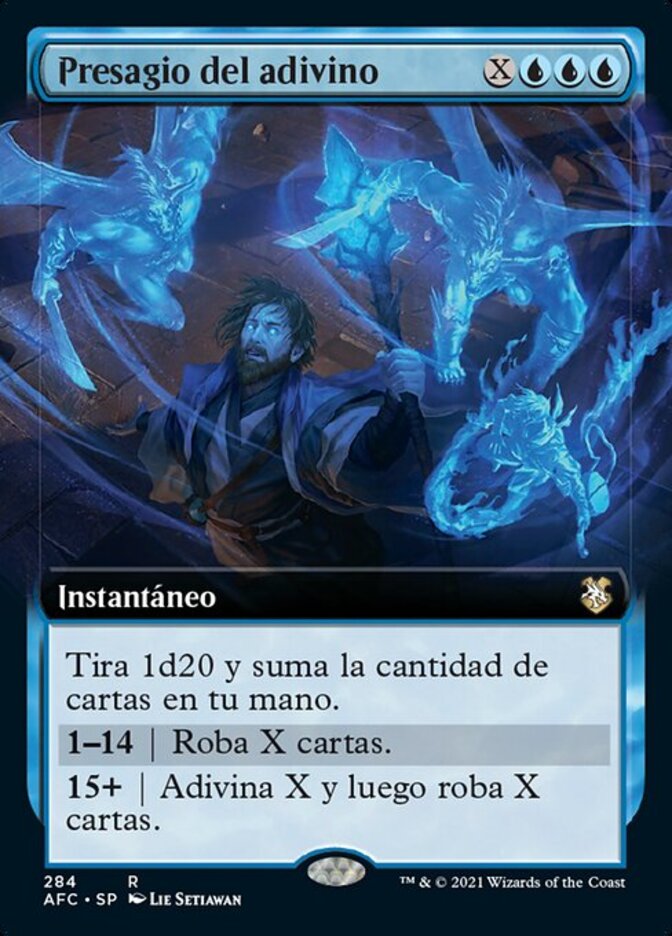 | Rules | Roll a d20 and add the number of cards in your hand. 1—14 | Draw X cards. 15+ | Scry X, then draw X cards. |