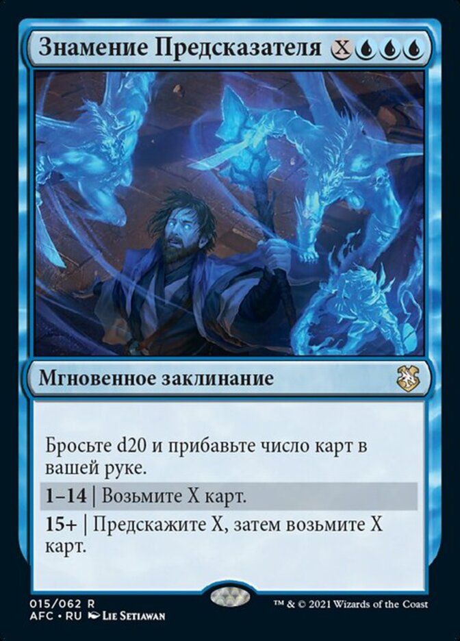 | Rules | Roll a d20 and add the number of cards in your hand. 1—14 | Draw X cards. 15+ | Scry X, then draw X cards. |