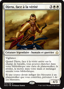 | Rules | Vigilance When Djeru, With Eyes Open enters the battlefield, you may search your library for a planeswalker card, reveal it, put it into your hand, then shuffle. If a source would deal damage to a planeswalker you control, prevent 1 of that damage. |