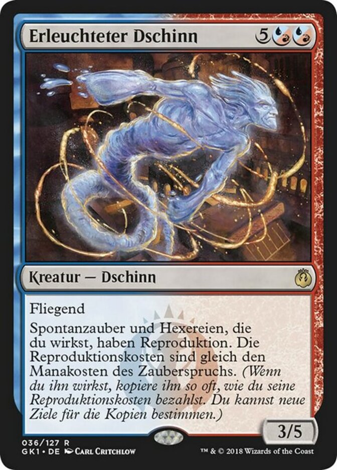 | Rules | ( can be paid with either or .) Flying Each instant and sorcery spell you cast has replicate. The replicate cost is equal to its mana cost. (When you cast it, copy it for each time you paid its replicate cost. You may choose new targets for the copies.) |