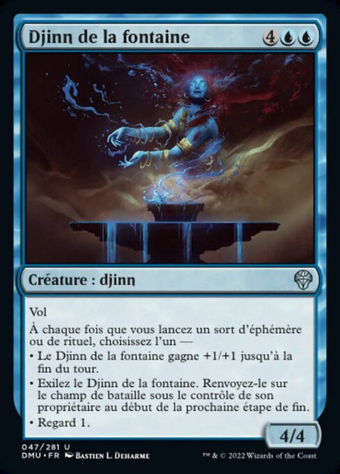 | Rules | Flying Whenever you cast an instant or sorcery spell, choose one — • Djinn of the Fountain gets +1/+1 until end of turn. • Exile Djinn of the Fountain. Return it to the battlefield under its owner's control at the beginning of the next end step. • Scry 1. |