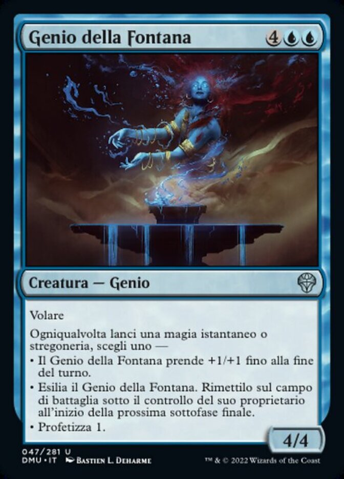 | Rules | Flying Whenever you cast an instant or sorcery spell, choose one — • Djinn of the Fountain gets +1/+1 until end of turn. • Exile Djinn of the Fountain. Return it to the battlefield under its owner's control at the beginning of the next end step. • Scry 1. |