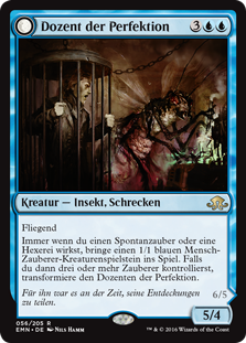 | Rules | Flying Whenever you cast an instant or sorcery spell, create a 1/1 blue Human Wizard creature token. Then if you control three or more Wizards, transform Docent of Perfection. // Flying Wizards you control get +2/+1 and have flying. Whenever you cast an instant or sorcery spell, create a 1/1 blue Human Wizard creature token. |
