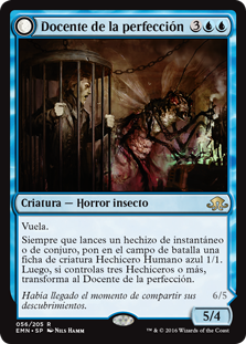 | Rules | Flying Whenever you cast an instant or sorcery spell, create a 1/1 blue Human Wizard creature token. Then if you control three or more Wizards, transform Docent of Perfection. // Flying Wizards you control get +2/+1 and have flying. Whenever you cast an instant or sorcery spell, create a 1/1 blue Human Wizard creature token. |