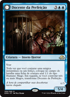 | Rules | Flying Whenever you cast an instant or sorcery spell, create a 1/1 blue Human Wizard creature token. Then if you control three or more Wizards, transform Docent of Perfection. // Flying Wizards you control get +2/+1 and have flying. Whenever you cast an instant or sorcery spell, create a 1/1 blue Human Wizard creature token. |