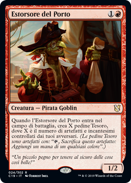 | Rules | When Dockside Extortionist enters the battlefield, create X Treasure tokens, where X is the number of artifacts and enchantments your opponents control. (Treasure tokens are artifacts with ", Sacrifice this artifact: Add one mana of any color.") |