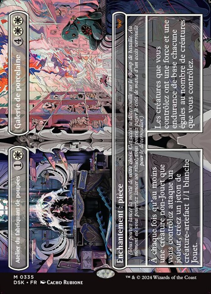 | Rules | (You may cast either half. That door unlocks on the battlefield. As a sorcery, you may pay the mana cost of a locked door to unlock it.) Whenever one or more non-Toy creatures you control attack a player, create a 1/1 white Toy artifact creature token. // (You may cast either half. That door unlocks on the battlefield. As a sorcery, you may pay the mana cost of a locked door to unlock it.) Creatures you control have base power and toughness each equal to the number of creatures you control. |