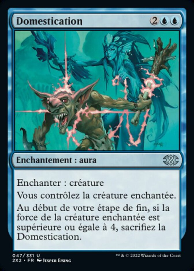 At the beginning of your end step, if enchanted creature's power is 4 or greater, sacrifice Domestication.