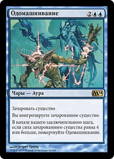 | Rules | Enchant creature You control enchanted creature. At the beginning of your end step, if enchanted creature's power is 4 or greater, sacrifice Domestication. |