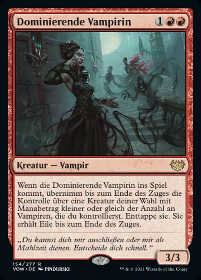| Rules | When Dominating Vampire enters the battlefield, gain control of target creature with mana value less than or equal to the number of Vampires you control until end of turn. Untap that creature. It gains haste until end of turn. |