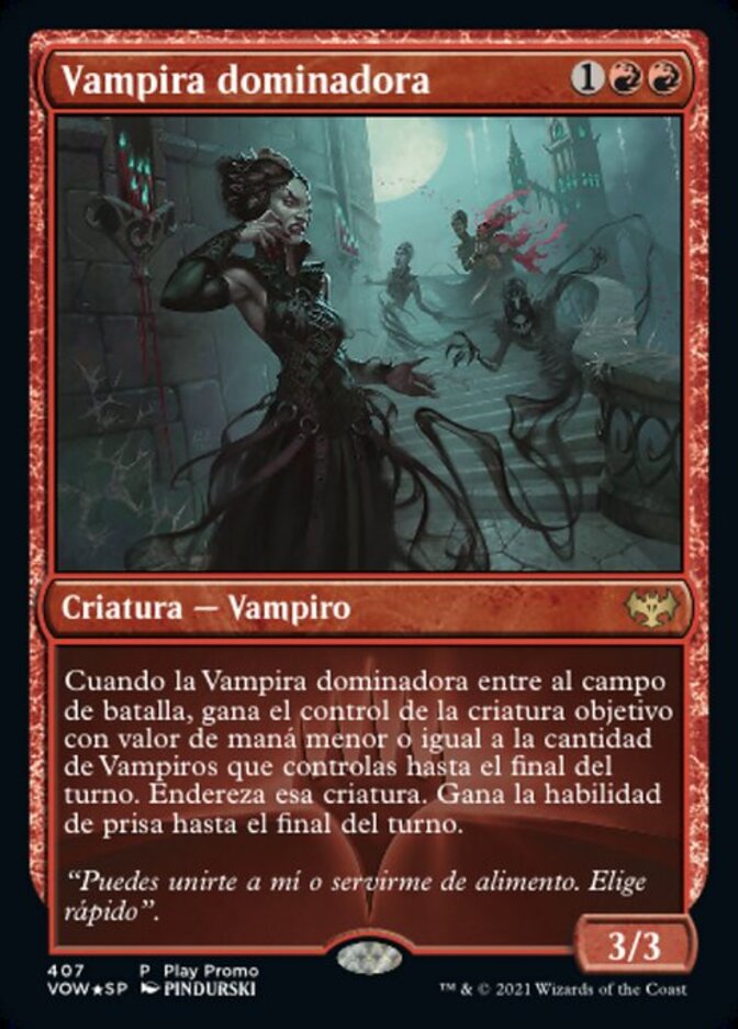| Rules | When Dominating Vampire enters the battlefield, gain control of target creature with mana value less than or equal to the number of Vampires you control until end of turn. Untap that creature. It gains haste until end of turn. |