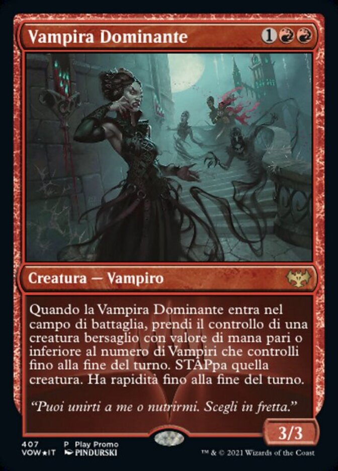 | Rules | When Dominating Vampire enters the battlefield, gain control of target creature with mana value less than or equal to the number of Vampires you control until end of turn. Untap that creature. It gains haste until end of turn. |