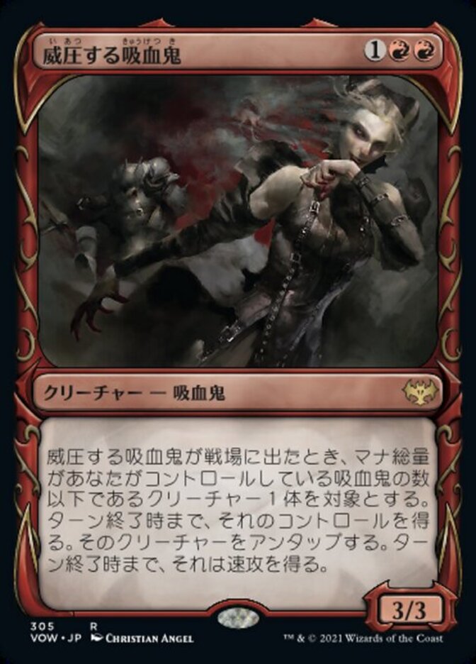 | Rules | When Dominating Vampire enters the battlefield, gain control of target creature with mana value less than or equal to the number of Vampires you control until end of turn. Untap that creature. It gains haste until end of turn. |