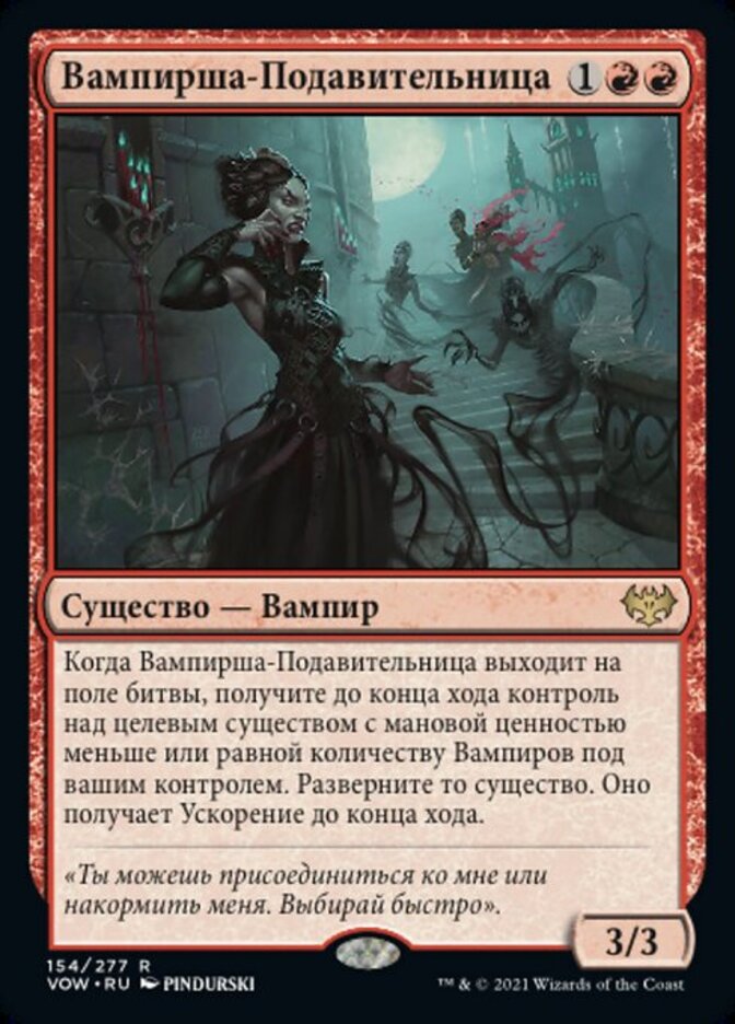 | Rules | When Dominating Vampire enters the battlefield, gain control of target creature with mana value less than or equal to the number of Vampires you control until end of turn. Untap that creature. It gains haste until end of turn. |