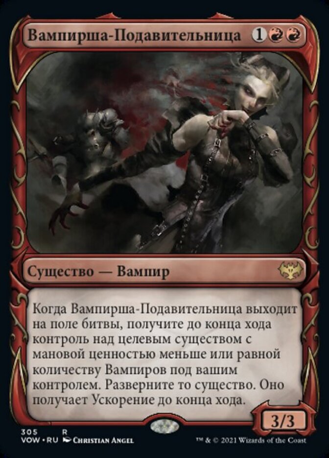 | Rules | When Dominating Vampire enters the battlefield, gain control of target creature with mana value less than or equal to the number of Vampires you control until end of turn. Untap that creature. It gains haste until end of turn. |