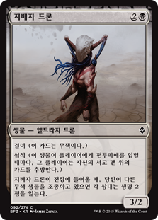 | Rules | Devoid (This card has no color.) Ingest (Whenever this creature deals combat damage to a player, that player exiles the top card of their library.) When Dominator Drone enters the battlefield, if you control another colorless creature, each opponent loses 2 life. |