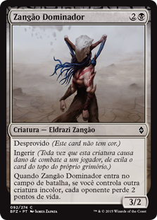 | Rules | Devoid (This card has no color.) Ingest (Whenever this creature deals combat damage to a player, that player exiles the top card of their library.) When Dominator Drone enters the battlefield, if you control another colorless creature, each opponent loses 2 life. |