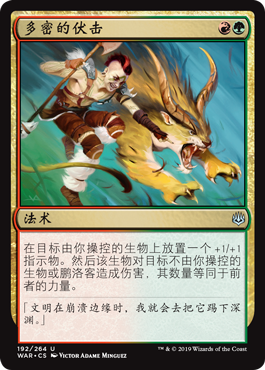 | Rules | Put a +1/+1 counter on target creature you control. Then that creature deals damage equal to its power to target creature or planeswalker you don't control. |