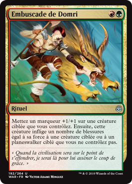 | Rules | Put a +1/+1 counter on target creature you control. Then that creature deals damage equal to its power to target creature or planeswalker you don't control. |