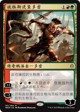 | Rules | Creatures you control get +1/+0. +1: Add or . Creature spells you cast this turn can't be countered. −2: Target creature you control fights target creature you don't control. |