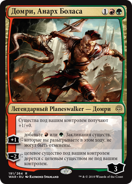 | Rules | Creatures you control get +1/+0. +1: Add or . Creature spells you cast this turn can't be countered. −2: Target creature you control fights target creature you don't control. |
