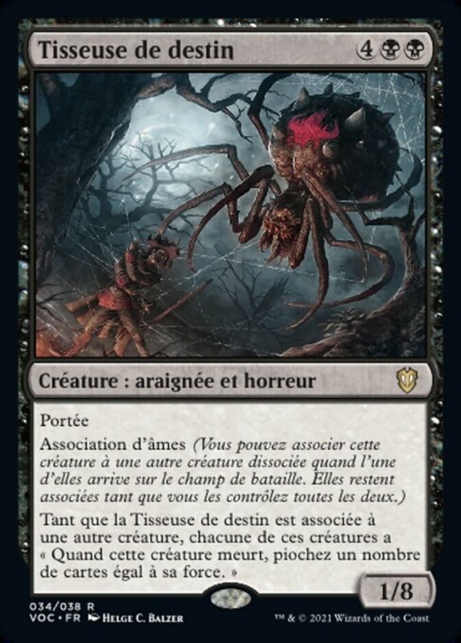 | Rules | Reach Soulbond (You may pair this creature with another unpaired creature when either enters the battlefield. They remain paired for as long as you control both of them.) As long as Doom Weaver is paired with another creature, each of those creatures has "When this creature dies, draw cards equal to its power." |