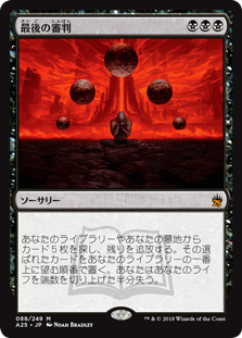 | Rules | Search your library and graveyard for five cards and exile the rest. Put the chosen cards on top of your library in any order. You lose half your life, rounded up. |