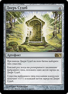 | Rules | As Door of Destinies enters the battlefield, choose a creature type. Whenever you cast a spell of the chosen type, put a charge counter on Door of Destinies. Creatures you control of the chosen type get +1/+1 for each charge counter on Door of Destinies. |