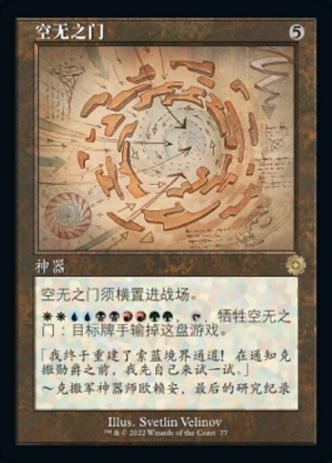 | Rules | Door to Nothingness enters the battlefield tapped. , , Sacrifice Door to Nothingness: Target player loses the game. |