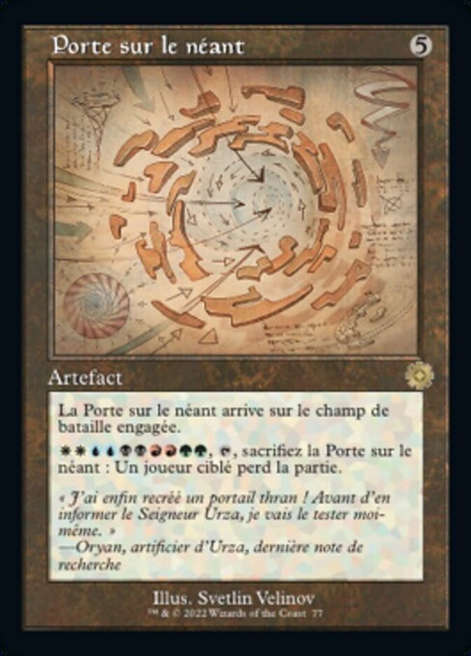 | Rules | Door to Nothingness enters the battlefield tapped. , , Sacrifice Door to Nothingness: Target player loses the game. |